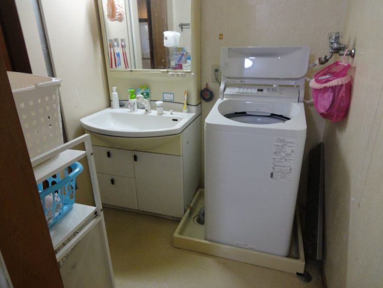 75㎝洗面化粧台と80㎝の洗濯機パンで無駄なスペースがありました。